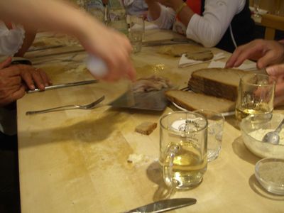 Dazu gab es Brot, dass sich der Insider in Stücke schneidet,