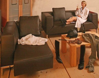 Das Sofa Longueville kommt wirklich sehr gut an. Simone natürlich auch. Die Posltermöbel im Sonderangebot.