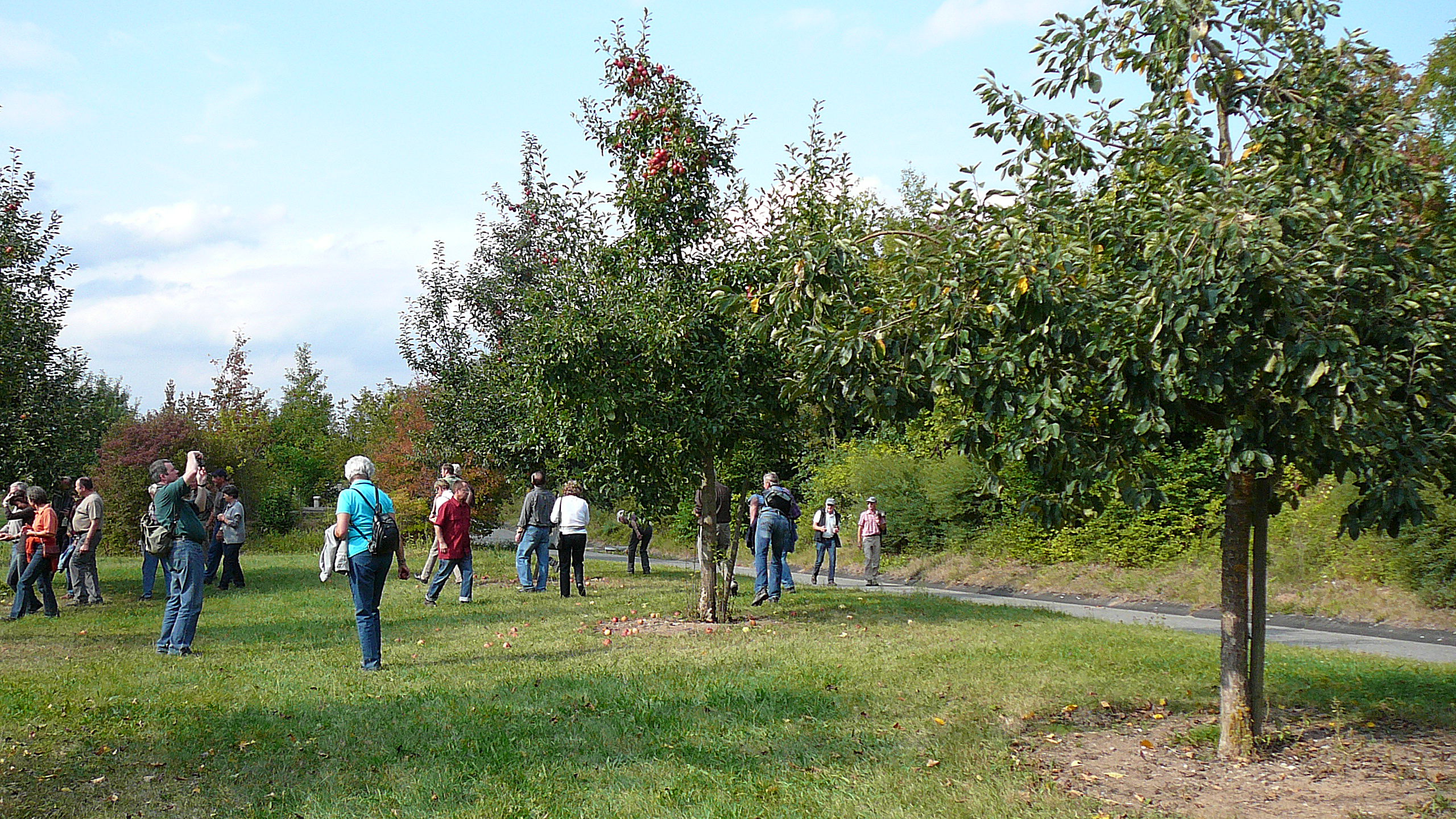 Am vergangenen Samstag füllten Mitglieder und Gäste der Streuobstinitiative Hersbrucker Alb e.V. einen Bus und folgten somit der Einladung von Ottmar Fischer zum Kennenlernen einer P1120173 schon fast P1120167 vergessenen Frucht, die da "Quitte" heisst, und Quitten waren der Grund für die Tagesfahrt nach Unterfranken an die Mainschleife, wo ein Rekultivierungsprojekt  alter Quittensorten im Gang ist. P1120169 Marius Wittur, der Initiator dieses Projekts, beglP1120165eitete uns auf dem "Astheimer  Quittenlehrpfad" und erzählte mit grosser Sachkenntnis und Begeisterung, wie er zum Projekt "Quittenbaumschule und Quittenweinbau MUSTEA" kam. Auf dem Rundwanderweg von P1120194 P1120193 etwa 4 km Länge kamen wir an zwölf thematisch verschiedenen Stationen vorbei, die sich mit Botanik, Sortenvielfalt, Mythologie, Symbolik, Heilkunde und Fruchtverwertung von Quitten befassen. Die abschliessende Quittenweinprobe fiel fröhlich aus. Wir hatten die Wahl zwischen MUSTEA Quittenwein cuvée classic, Barrique cydonia und Quittensecco. Vom Genuss beschwingt eilten wir zum Mittagessen auf die Vogelburg. Nach dem Essen setzten wir unseren Erlebnissamstag fort. P1120201 Vorher aber freuten wir uns noch über die Rebhänge unter uns. Die wenigen Regenwolken hatten sich verzogen. In Veitshöchheim erwartete uns Martin Degenberg, Koordinator  an der Bayerischen Landesanstalt für Weinbau und Gartenbau.