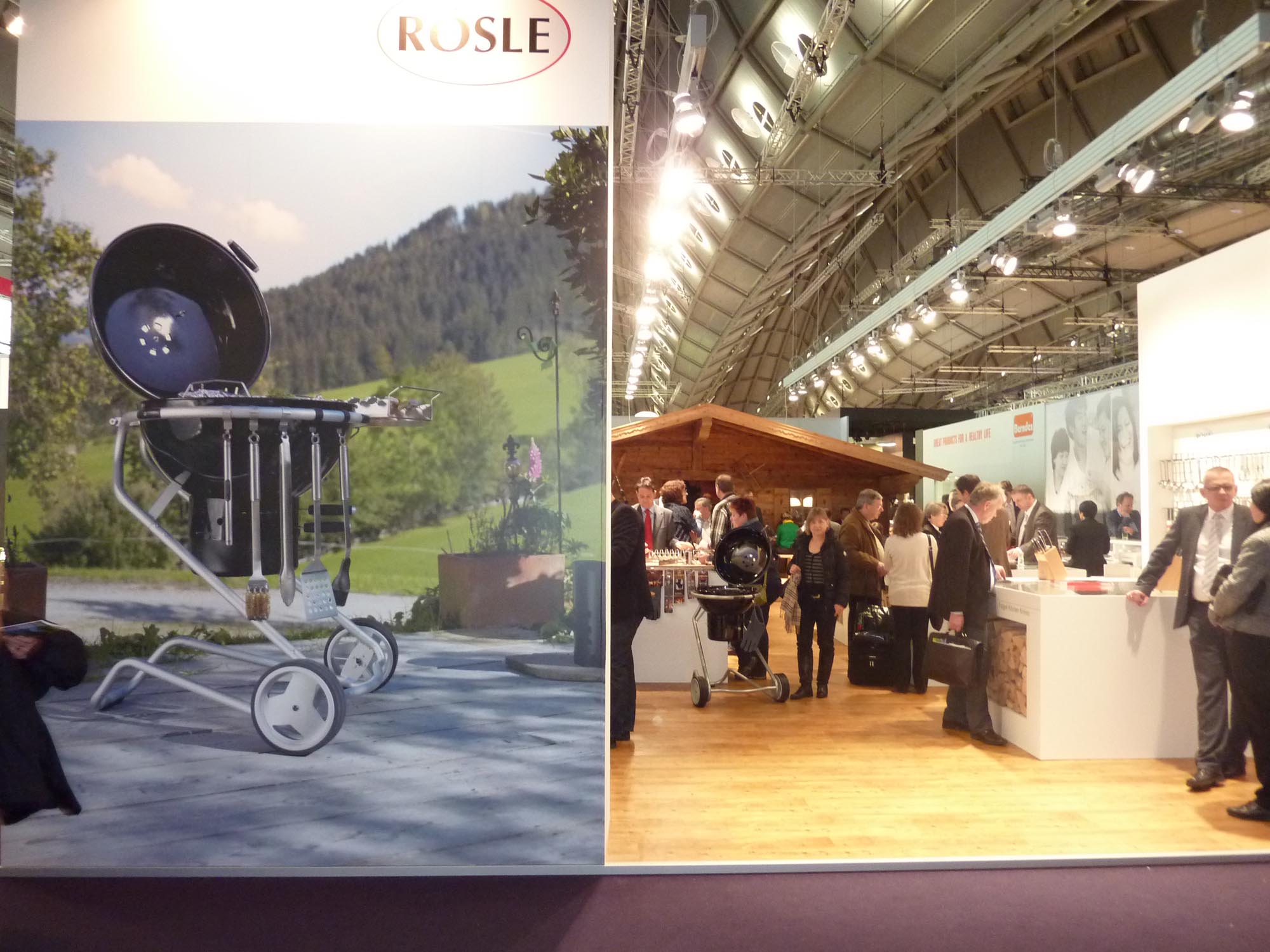 Am meisten Zeit haben wir auf der Haushaltsmesse Ambiente in Frankfurt am Stand von Rösle verbracht, für den sich die Firma aus Marktoberndorf im Allgäu extra eine komplette Berghütte gekauft hatte. Anlass war der neue Grill und das Werbekonzept dazu, dass drei mittelalterliche Männer beim Grillen ohne Frauen zeigt. Aber egal, ob einem die Bilder oder leicht mitschwingende Macho-Untertöne gefallen, der Grill ist der Hit, wie unser jahrzehntelanger Partner, (der leider in Ruhestand geht) im Video eindrucksvoll erklärt: