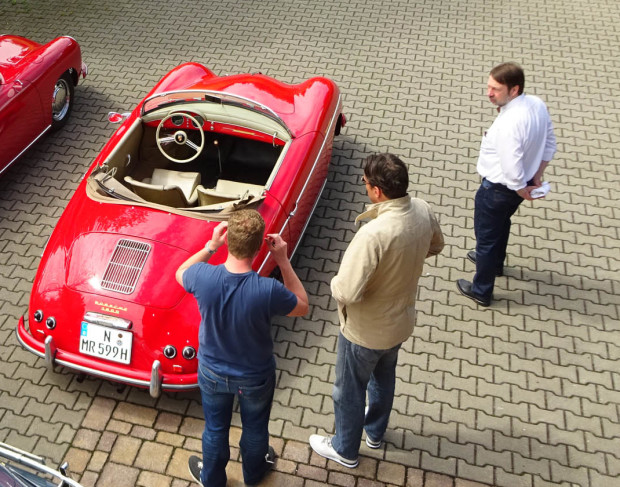 Im Newsletter 127 haben wir zum Besuch von 20 Oldtimerporsches des Modells 356 auch Besucher eingeladen und es kamen einige Fans dieser deutschen Autobaulegende als Gäste, auch der Nachbarskater Hobbit war sehr interessiert. Wir selbst vermuteten ja, dass Autofans nicht sehr viel mit Wohnen, Küchen und Möbeln am Hut haben, aber die Führung durch die Werkstatt brachte dann doch einige Parallelen zum edlen Autobau zum Vorschein.