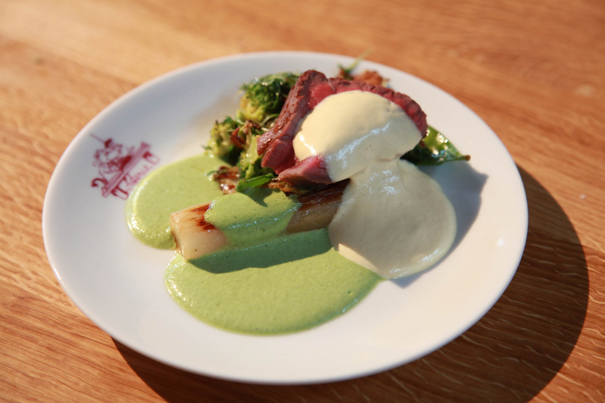Aber das schwang nur bei uns persönlich leicht mit, thematisiert haben wir vielmehr den Hutangerochsen, den wir dem Naturschutzzentrum Wengleinpark im ganzen abkauften und der uns das ganze Wochenende – von der Nase bis zum Schwanz – kulinarisch begleitete. Vier Wochen verbrachte er – passend zum Thema des richtigen Zeitpunkts – im Reifeschrank Salt-Ager von Königssalz, in dem bei der Trockenreifung Wasser raus und Geschmack reingeht.