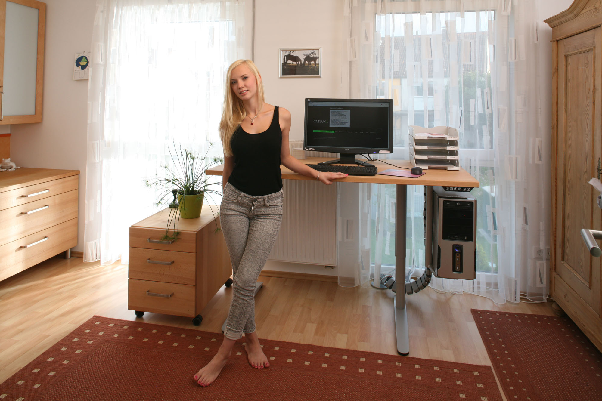Am Arbeitsplatz erleichtert zum Beispiel ein höhenverstellbarer Schreibtisch nicht nur den häufigen Wechsel zwischen Sitzen und Stehen, sondern bietet auch unterschiedliche Arbeitshöhen für das Schreiben an der Tastatur, dem Surfen im Netz oder dem Lesen von Texten. Auch das von Sprachtrainern empfohlene Telefonieren im Stehen – es verbessert Stimme und Aussprache – ist damit leicht zu verwirklichen, weil Tastatur und Bildschirm trotzdem sicht- und bedienbar bleiben.