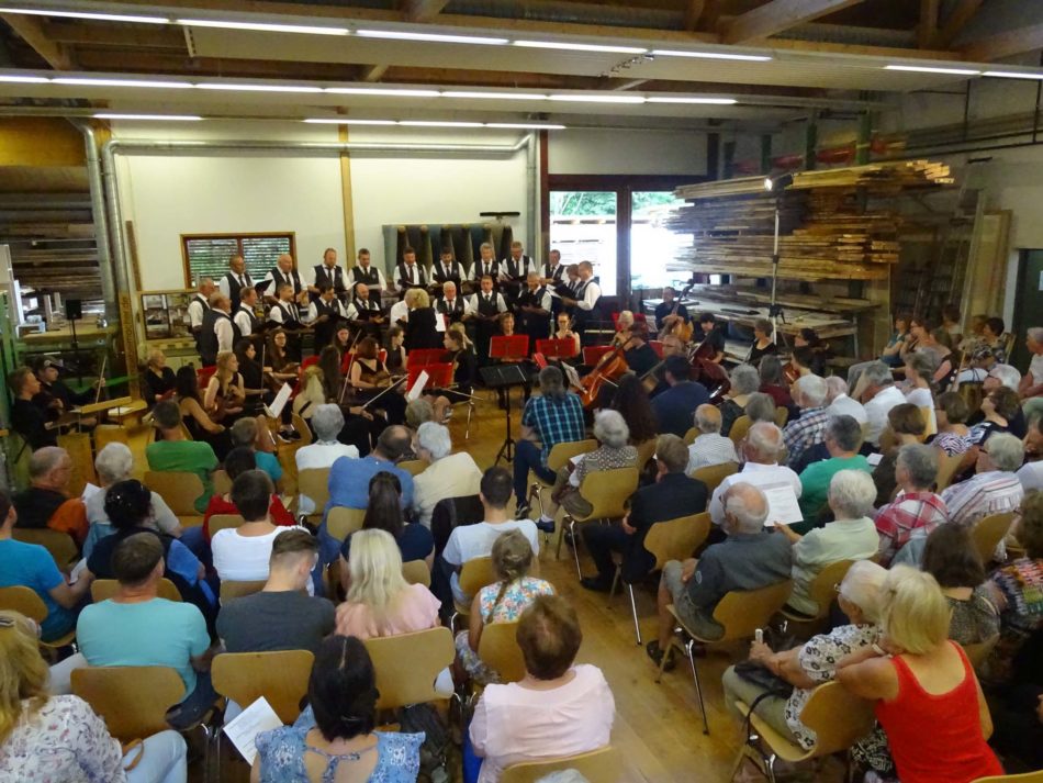 Es gab viel zu jubeln: 20 Jahre Unterkrumbacher Werkstatttage, 30 Jahre Möbelmacher, außerdem 35 Jahre Collegium Musicum. Erwähnenswert ist auch das Alter des Alfelder Männergesangvereins, der es auf stolze 166 Jahre bringt. Am dritten Tag dieser 20.Werkstatttage also sollte nun das Collegium Musicum gemeinsam mit dem Gesangverein ein Jubiläumskonzert in der Produktionshalle der Möbelmacher geben.