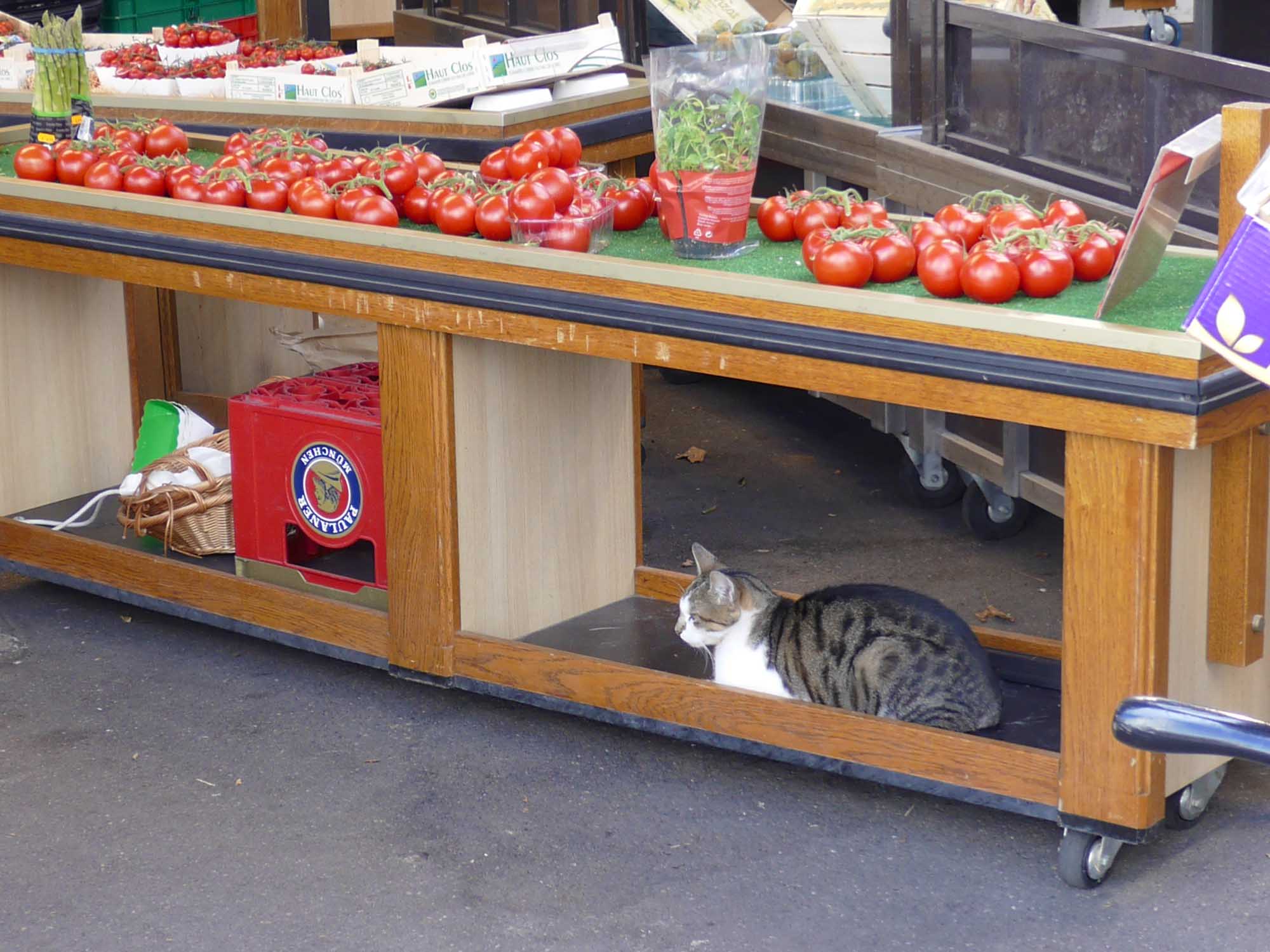 Bleibt noch ein Katzenbild vom Fisch- und Gemüsehändler und die Hoffnung bald wieder nach Paris zu kommen … .