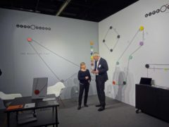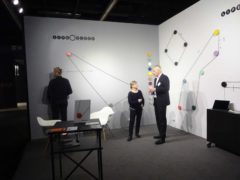 Ausnahmsweise ist der erste Artikel über die Möbelmesse einer grandiosen Idee gewidmet, die mit unseren langjährigen Lieferanten nur bedingt, aber schon ein wenig zu tun hat: Es geht um die Erfindung einer Uhr namens lifeoclock, die aus einem motorisch bewegten Gummiband mit einem „Jetzt-Punkt“ an der Wand mit mindestens zwei bis zu unzähligen Umlenkrollen aus Aluminium (eigentlich könnten wir sie auch aus Holz drechseln) befestigt wird.