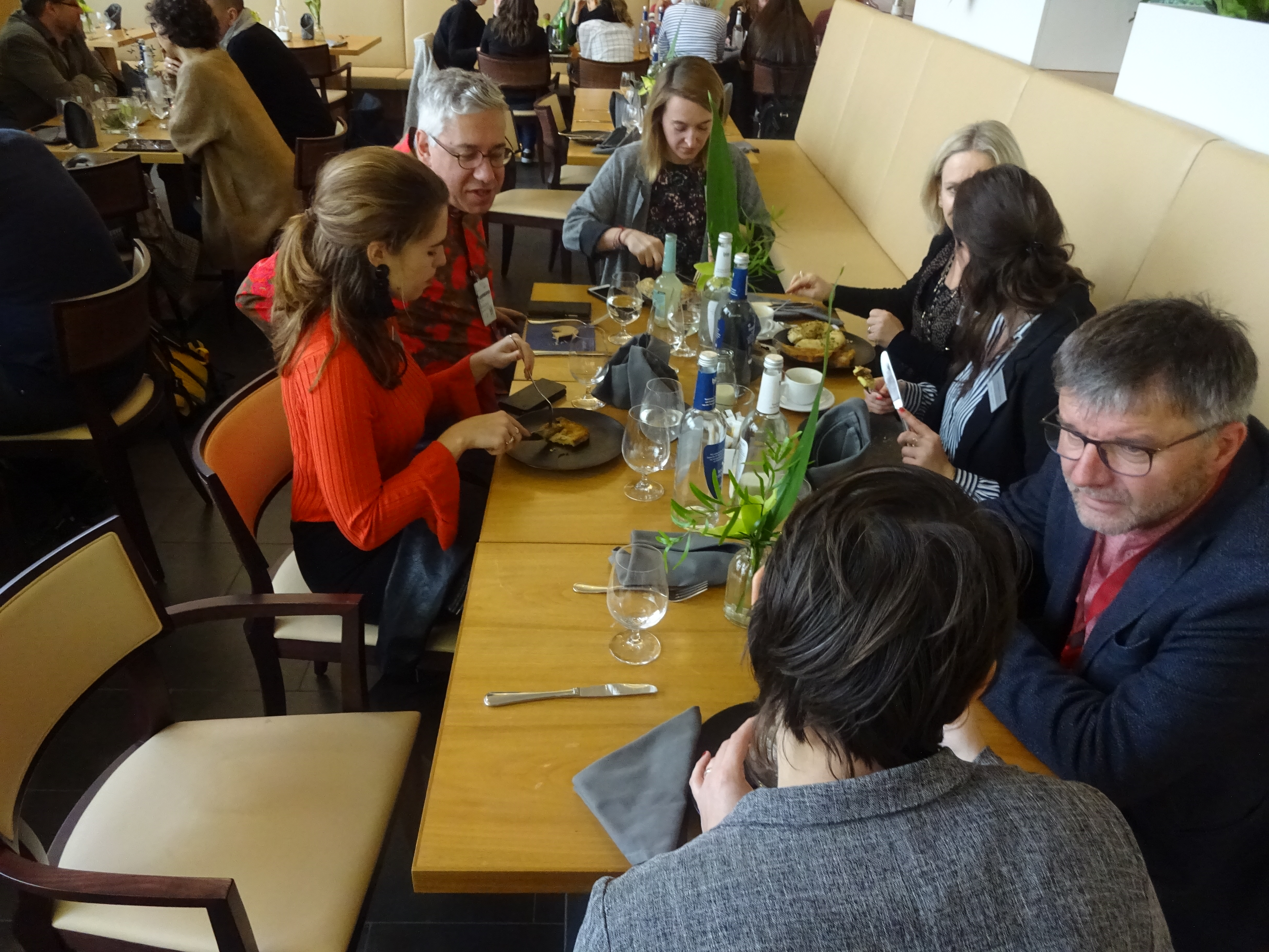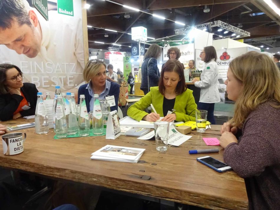 Wir konnten uns nicht vorstellen, dass ein so pompös angekündigter Vortrag „Authentisches Storytelling“ am Stand „cook + talk – Der Treff für Profiköche“ an einem Esstisch gehalten wird (die kompetente Referentin Olga Graf von den Food Kompanions anscheinend auch nicht), aber es war dann doch ganz interessant Olga, ihre Praktikantin Elisabeth Berlinghof und ausgesprochen interessante Teilnehmer kennenzulernen.