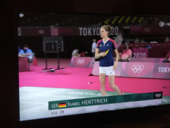 Die Hersbruckerin Isabel Herttrich (auf Wikipedia) spielt in Tokio für uns Federball und sie fängt gleich Samstag früh damit an: