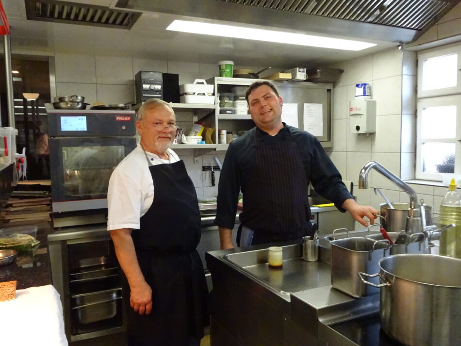 Sebastian erzählte von der Begeisterung und dem Können seines Vaters, Till von seinen Erfahrungen bei Fabian Feldmann, den unsere Tochter mit Familie übrigens vor kurzem im Restaurant in Biarritz besuchte (sollten Sie auch mal tun, mit herzlichem Gruß von uns). Das geschriebene Menü stammt ja noch vom Vortag, in der Zwischenzeit haben sich noch ein paar kleine Dinge geändert.