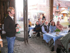 Die Zitronenbrösel darauf und das Leipziger Allerlei machten daraus einen wunderbaren Gang, der beinahe durch den Wein von Stefan Krämer ergänzt worden, wenn der nicht in der Zirbelstube vergessen worden wäre). Auf der gleichen Grünen Lust 2005 durften wir nur wenige Stunden nach der Kunkel-Kochshow eine Weinverkostung mit Stefan Krämer moderieren.