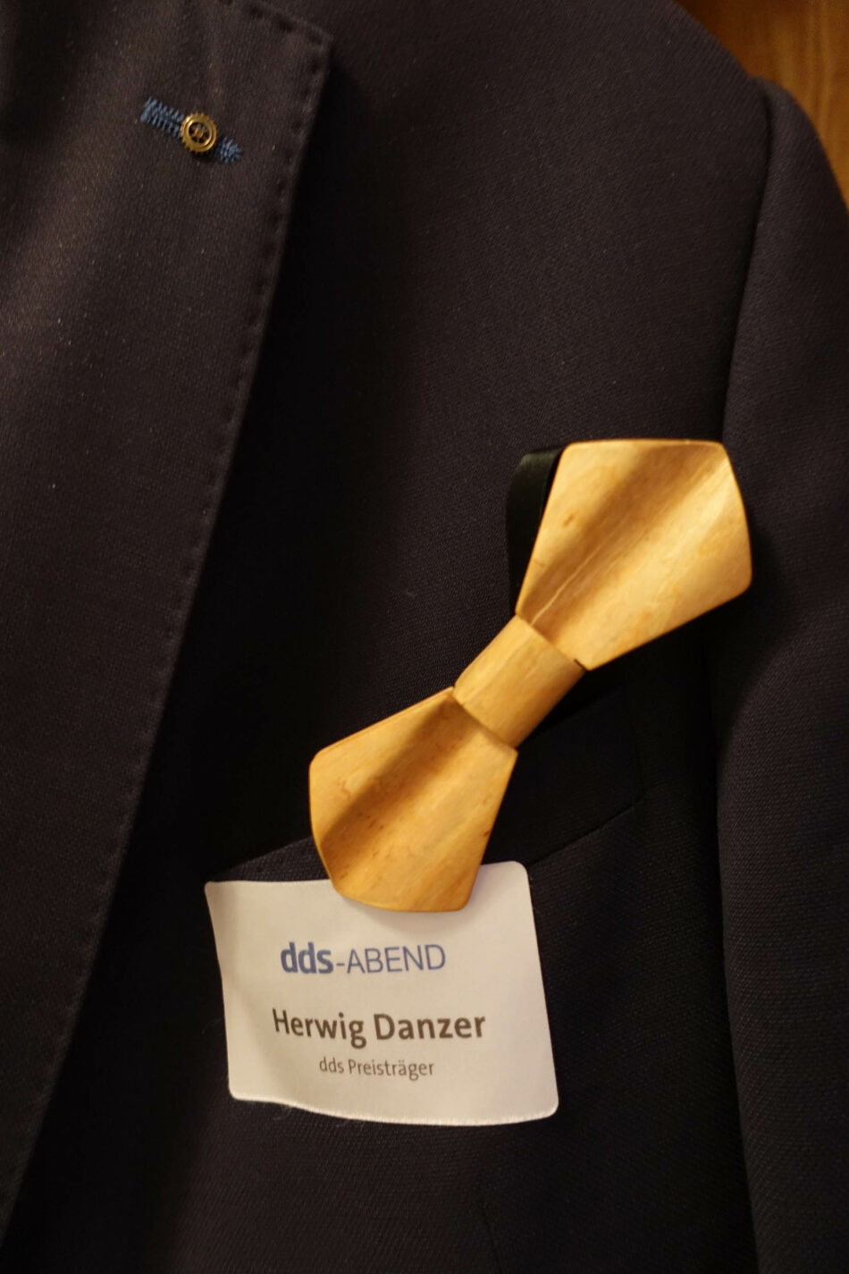 Während auf Utes und Sophias Namensschild, deren Name und „Die Möbelmacher“ stand, lautete der Text unter herwig Danzer (mit großem H geschrieben) „Preisträger“. Das wusste ich aber nicht (das Schild wurde mir ebenso freundlich wie bestimmt aufs Jackett geklebt), weshalb ich die vielen Gratulanten heftig bewunderte, die sich schon im Vorfeld der Berichterstattung meinen Namen merkten (dachte ich). Wir genossen bei vielen Gesprächen auch mit den zahlreichen Sponsoren der Veranstaltung (und Anzeigen-Stammkunden der dds) den Aperitif mit Himbeergeist und wahlweise auch ohne (dann schwamm eine Orange oben auf, statt einer Zitrone, raffinierter Trick zur Kennzeichnung).