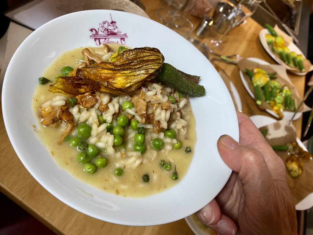 Risi Pisi mit Zucchiniblüte und Kölner Schnitte vor der Lesung