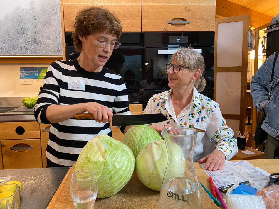 Das nur vorab: ich weiß nicht, welche andere Haushaltsküchen solche Kochaktionen unbeeindruckt wegstecken würden? Unsere Gäste von Hamburg bis Hersbruck, waren beeindruckt. Wobei man zugeben muss, dass vor allem Ute Danzer, assistiert zuletzt durch unsere engagierte Praktikantin Alina, durch das Lösen aller Probleme der Beschaffung noch mehr zum Gelingen des Workshops beitrug. Aber die Küchen waren trotzdem toll!