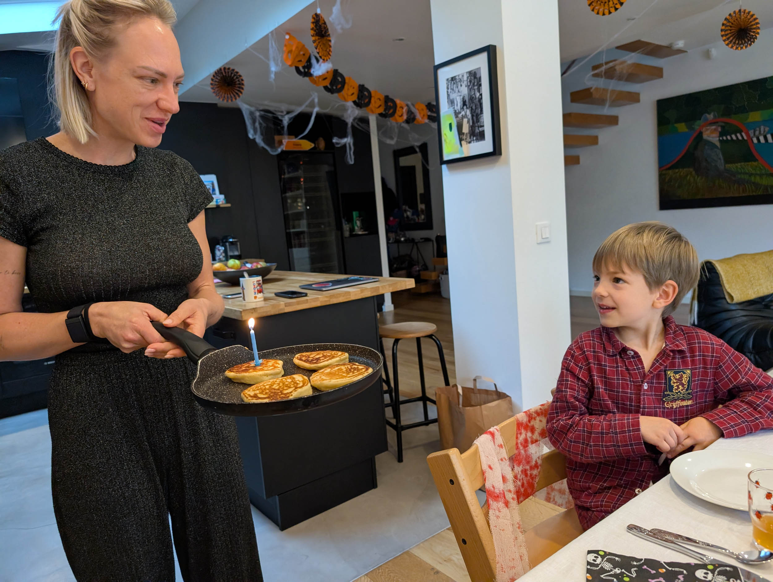 Jetzt hoffen wir mal, dass die Halloweenbegeisterung bis nächstes Jahr wieder vorbei ist, denn eigentlich ist ja auch Reformationstag und Tags darauf auch noch Allerheiligen. Das ist für Leopold natürlich der Hit, weil er vermutlich sein Leben lang nach seinem Geburtstag einen Feiertag genießen kann.