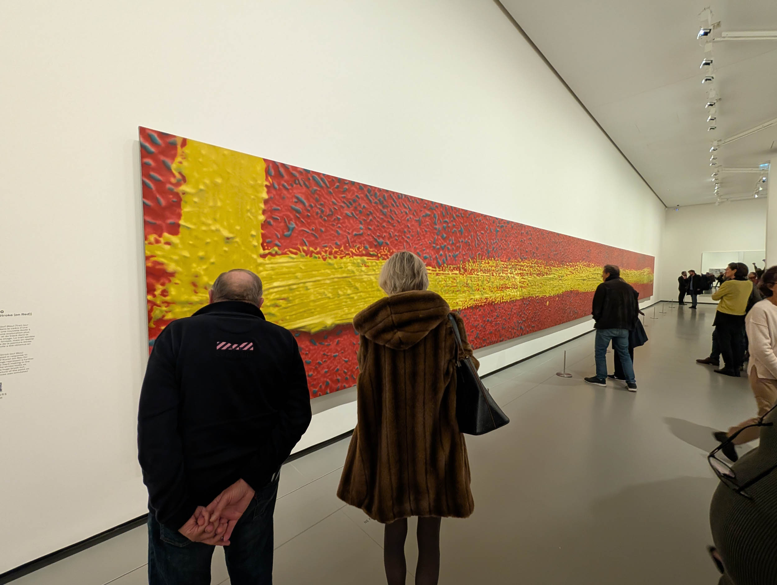 Ich habe die Hintergründe von diesem Bild noch am Smartphone nachgelesen und war für den folgenden Kunstgenuss stimmungstechnisch fast ausgeschaltet und setzte mich in Erwartung der hinter mir kommenden Familienmitglieder auf einen der wenigen Sitzplätze. Per Whatsapp erfuhr ich dann, dass auch unser Enkelkind – anders als sonst – an seinem Geburtstag verständlicherweise an dieser Kunstausstellung keine Freude fand, sondern die Geschenke zu Hause ausprobieren wollte. Also machten wir uns gemeinsam auf den Heimweg, aber wir werden wiederkommen, die grandiose Ausstellung ist noch bis 2. März 2026 geöffnet.