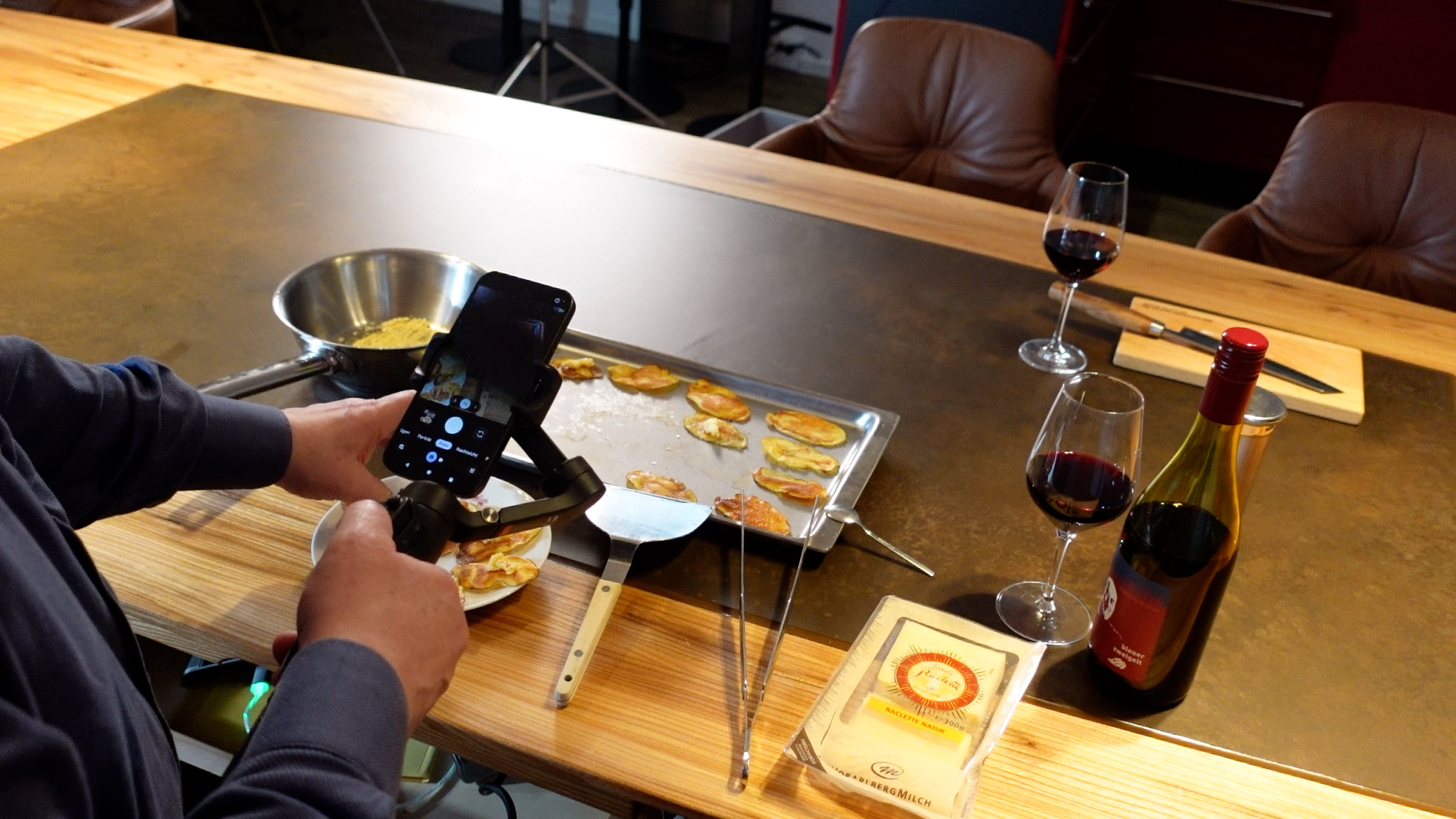 In einem kleinen MakingOf-Video haben wir die 90 Minuten Fotosession ohne Model zusammengefasst, also musste der Schmelzkäse und die Chips auf der Tepan Yaki-Platte den Hauptpart übernehmen (das Werbevideo für den Tisch ist ganz oben).