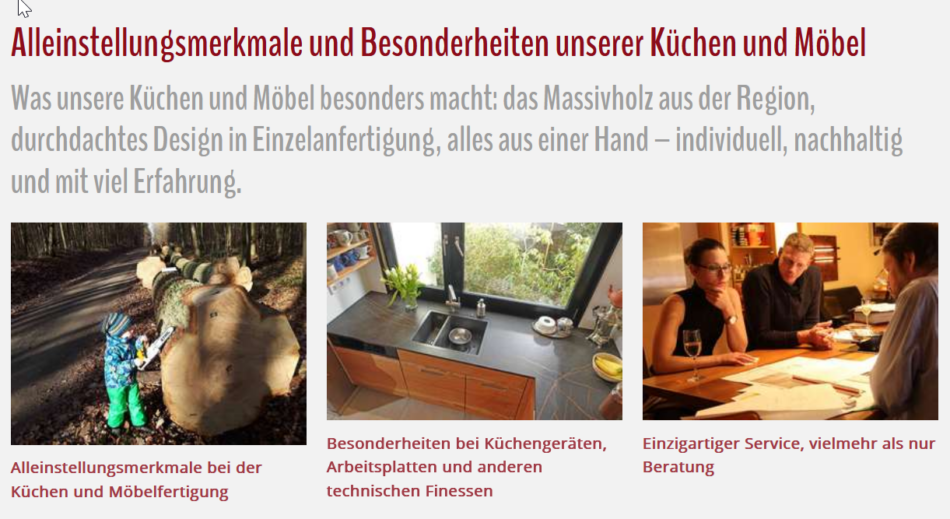 Die Seite Alleinstellungsmerkmale beantwortet viele Fragen