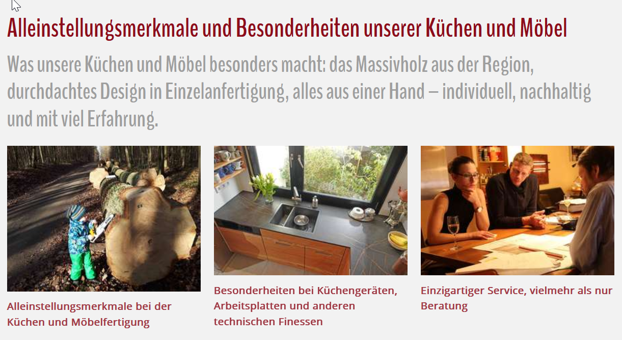 Herzlichen Dank für Ihr Feedback zu unserer Seite über unsere Alleinstellungsmerkmale und Besonderheiten, alle Verbesserungsvorschläge haben wir schon eingebaut, aber es ist trotzdem noch einiges zu tun.