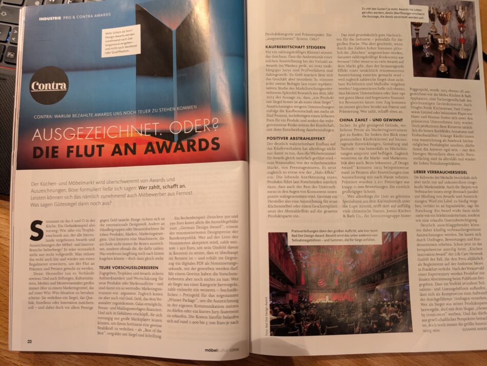 Nachtrag vom 7. Jan 2026: In der Fachzeitschrift Möbelkultur wird unsere Kritik an kostspieligen Preisen bestätigt.