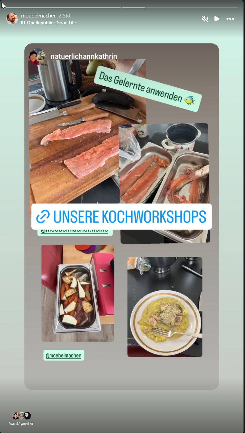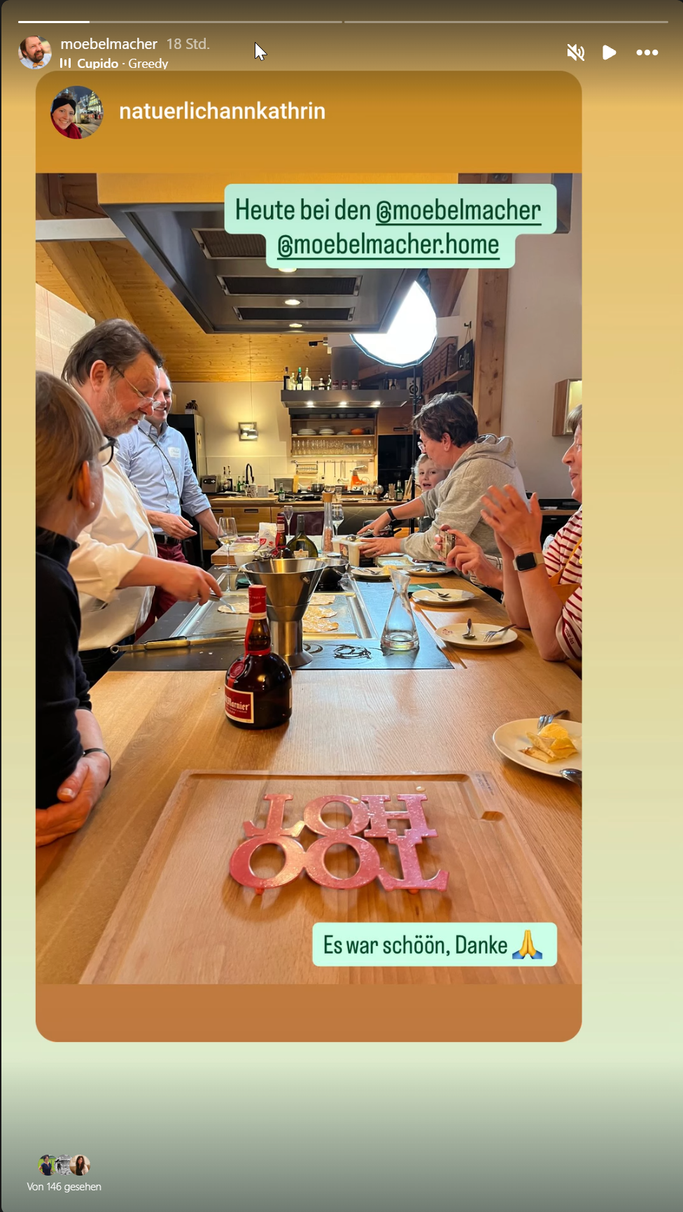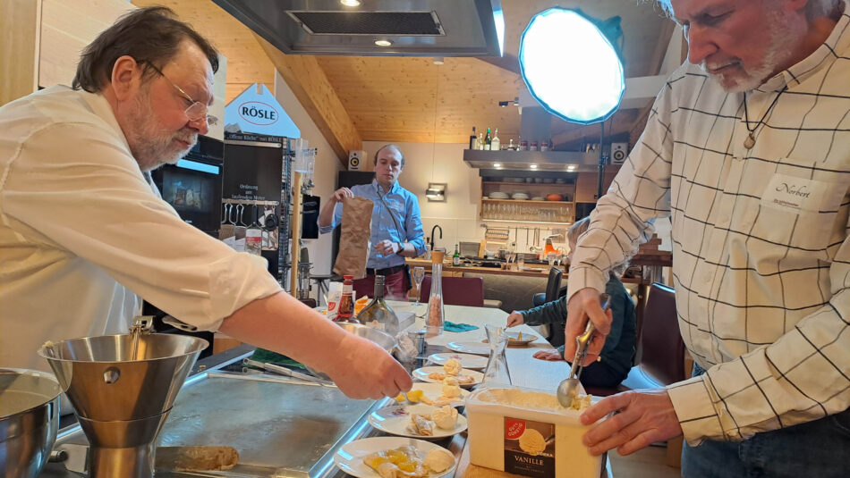Das Dessert nahmen wir dann an der höhenverstellbaren Kochinsel ein, tags darauf postete Ann Katrin schon ihre heimischen Erfolge in dieser Disziplin.