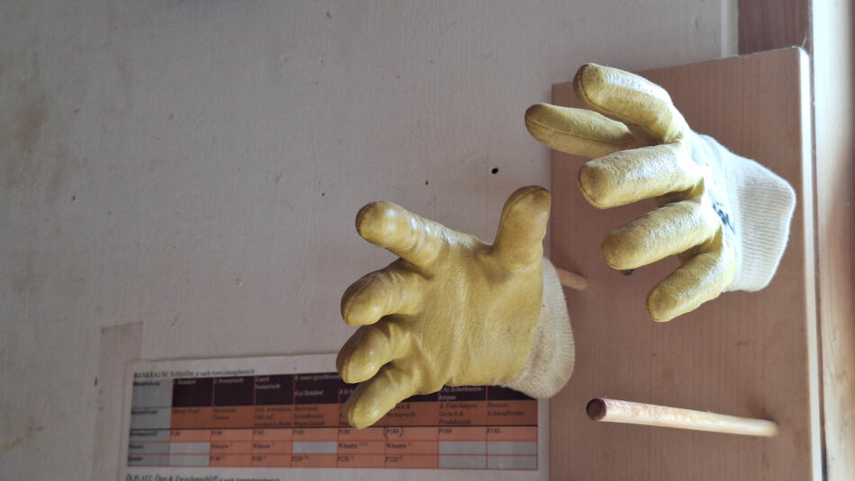 Wie bei allen Veranstaltungen ist auch immer eine Führung dabei, denn man muss ja auch wissen, wie unsere Möbel und Küchen vom Baum zu Tisch entstehen. Einen besonderen Schnappschuss machte unser Fotograf Norbert Ziegler mit den Handschuhen, die könnten auch aus einem Horrorfilm stammen.