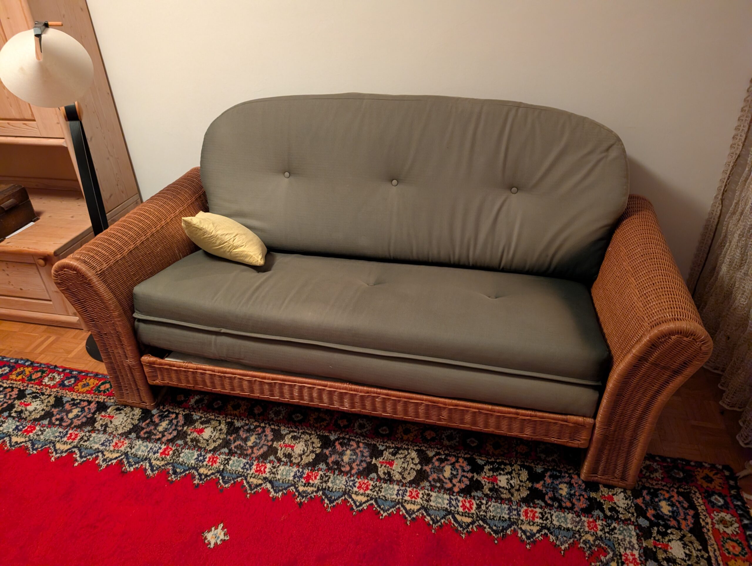 Dieses Korbsofa leistete bis vor kurzem noch wertvolle Dienste als Gästedoppelbett mit 140 mal 200 cm.