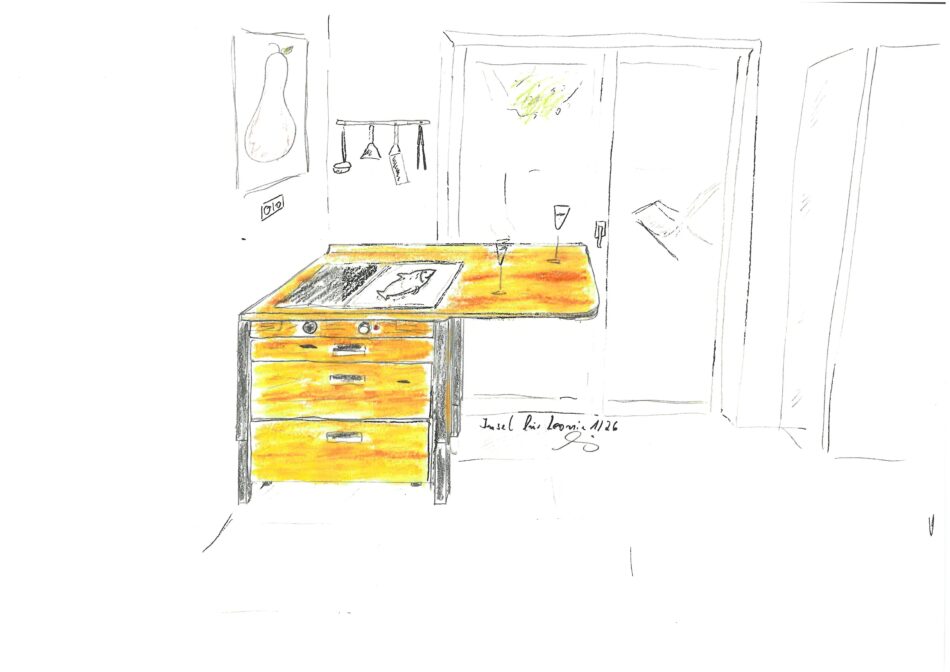 Dafür konnte ich nach langen Diskussionen für ein neues Projekt der höhenverstellbaren Kücheninsel erkennen, dass ein kleiner, nicht ganz korrekter Satz wie „natürlich kann man die Säulen auch andersrum verwenden“, eine ganze Kochinselplanung umwirft. Aber gottseidank sind wir rechtzeitig draufgekommen, wir waren erst in der Scribble-Phase für Leonies Küche.