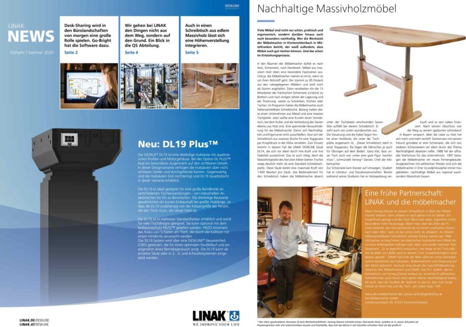 Er besuchte uns, brachte uns in den LINAK-Newsletter und seitdem sind wir in regelmäßigem Austausch über die Entwicklungen bei LINAK und den Möbelmachern. (Hier haben wir im Nachhaltigkeitsblog darüber berichtet).
