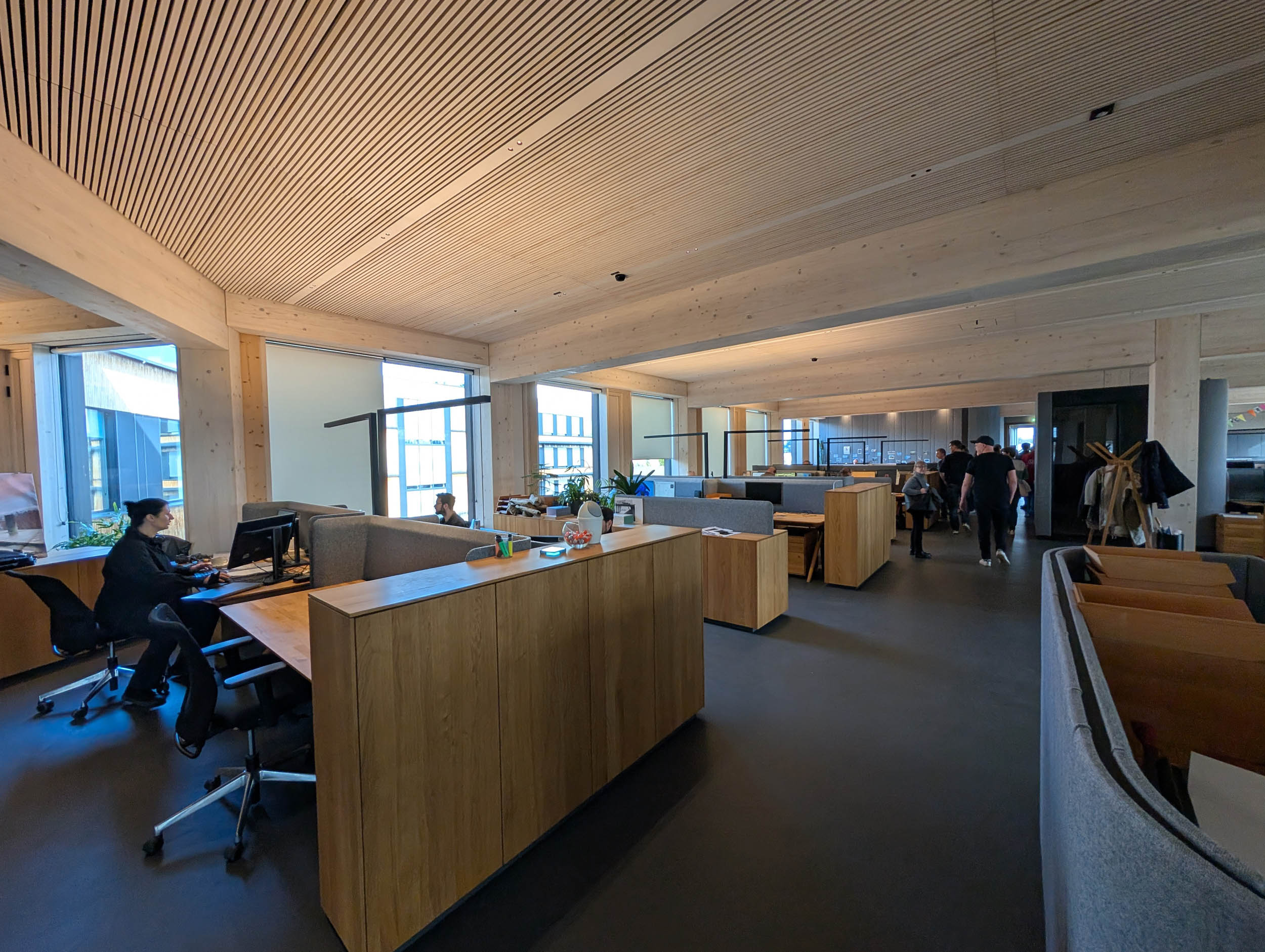 Team7 und die Möbelmacher wollten beide ein Gebäude, das ihren eigenen Ansprüchen an Wohn-, Arbeits- und Raumqualität entspricht und das für folgende Objekte als Vorbild dienen kann. Auf 6100 Quadratmetern ist das vorbildlich gelungen (unsere Halle hat knapp 1000) und die Arbeitsplätze in deren Büros sind optisch und akustisch die angenehmsten, die ich jemals gesehen habe.
