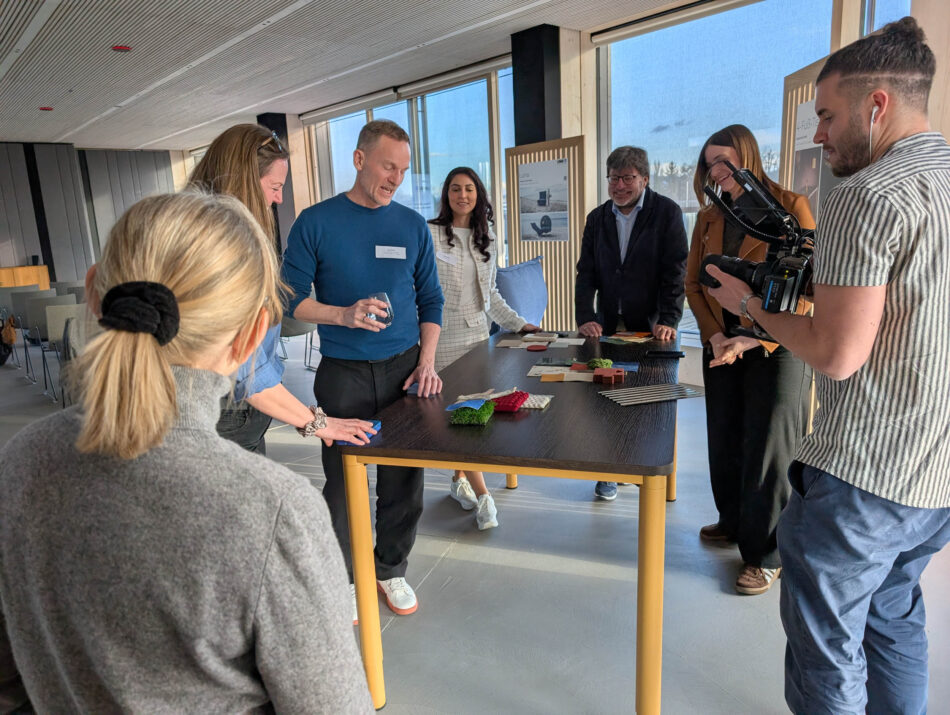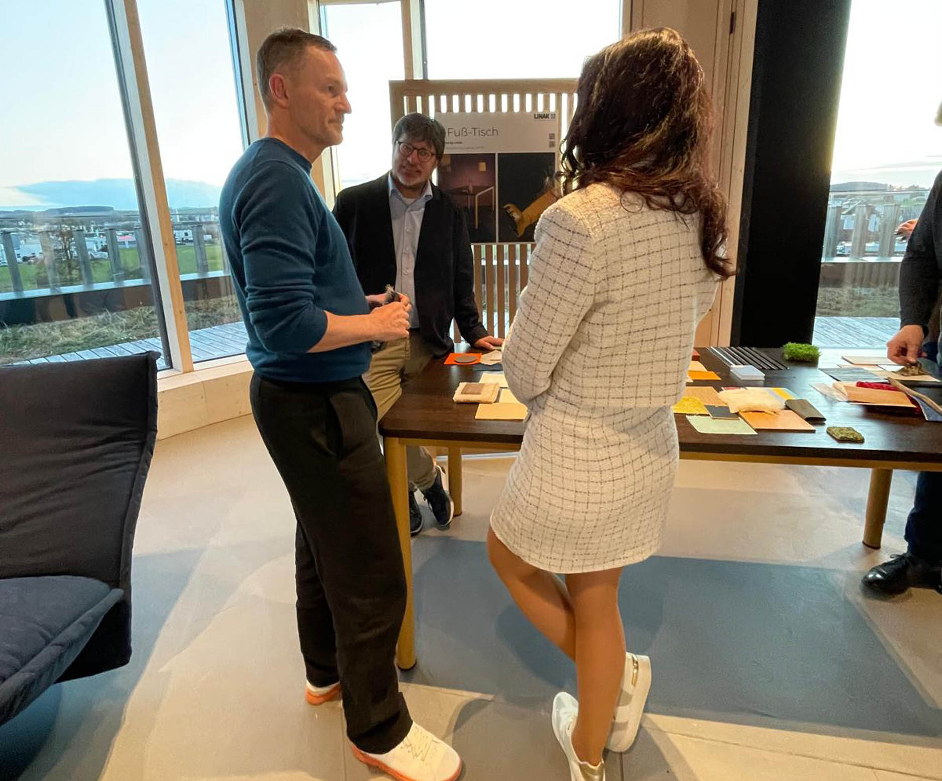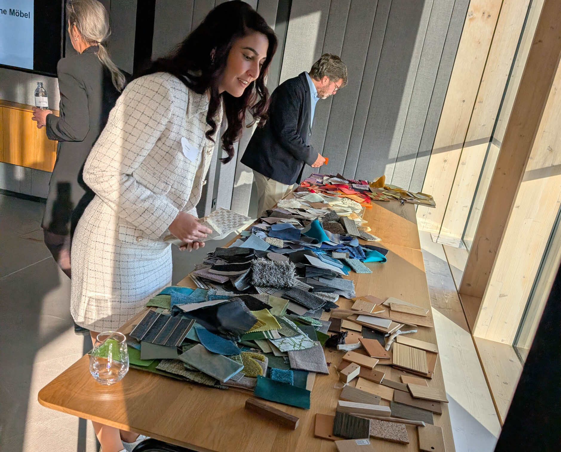 Ezgi Salman und Christian Renner von LINAK stellen ihr persönliches Moodboard aus den angebotenen Materialien zusammen