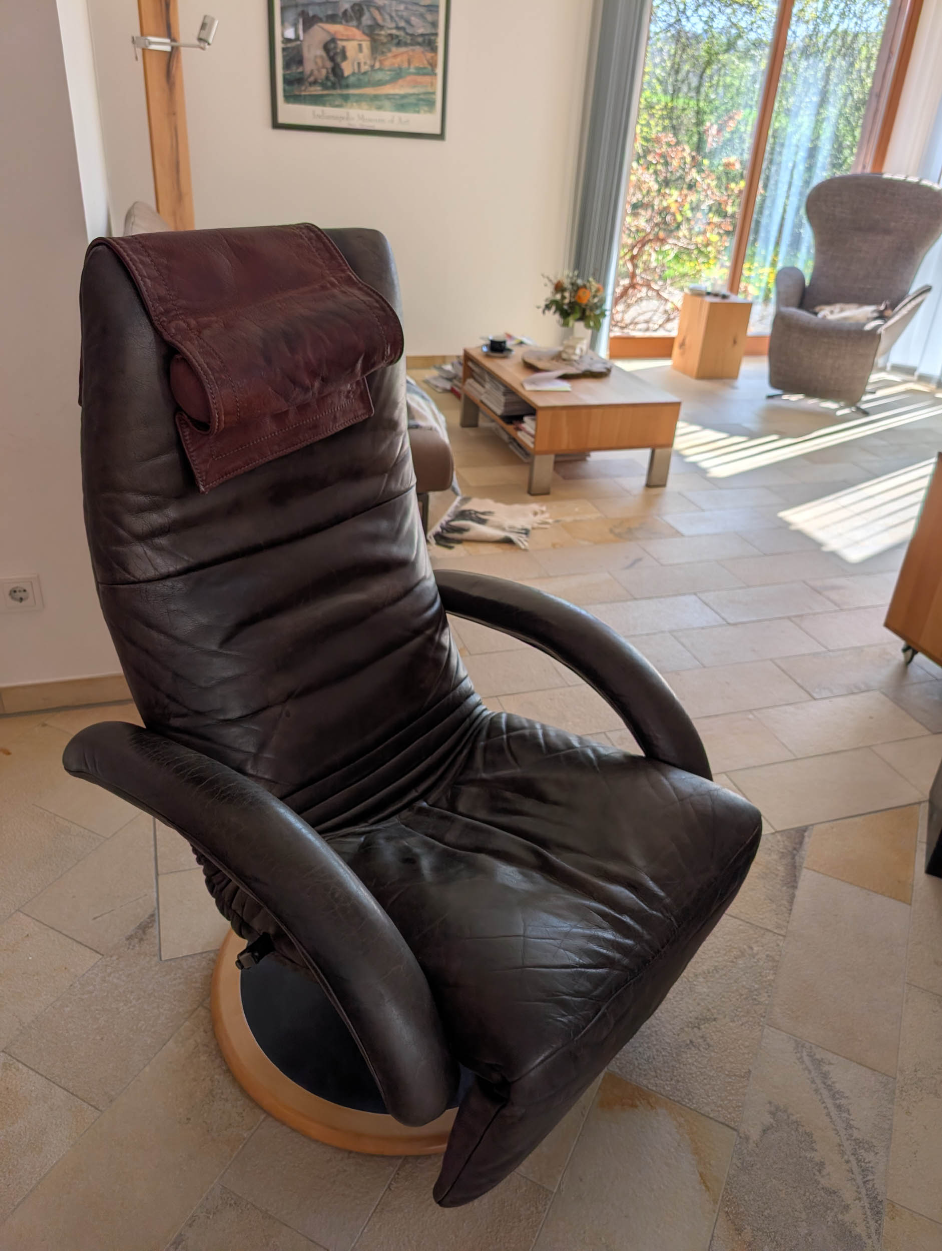Das Beste an jedem Relaxsessel ist das Nackenkissen, weil man es zum Lesen und Fernsehschauen normal verwendet; für das Nickerchen dreht man es aber um 90 Grad und hat nach dem Erwachen keine Probleme mit Verspannungen in der Nackenmuskulatur.