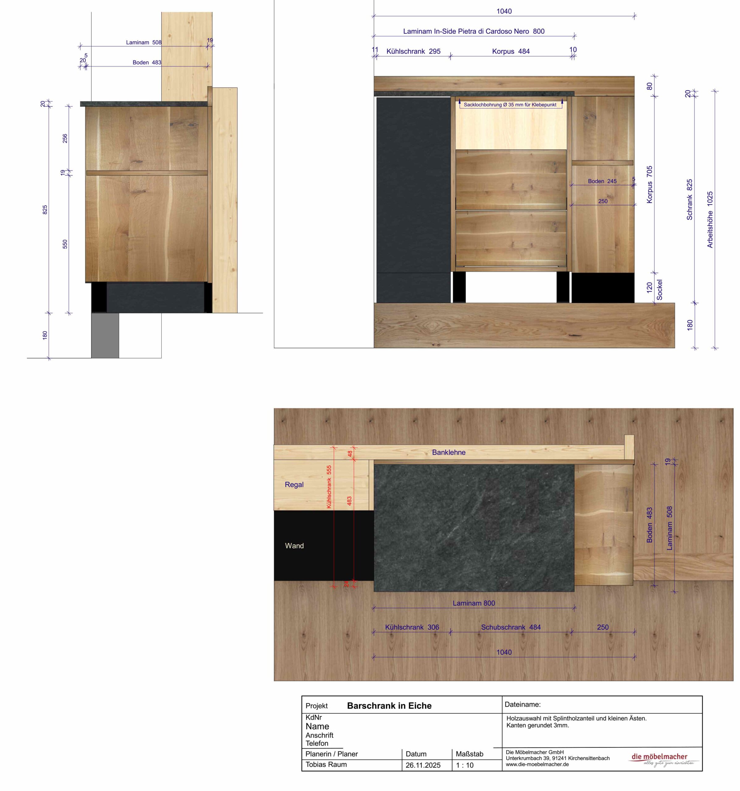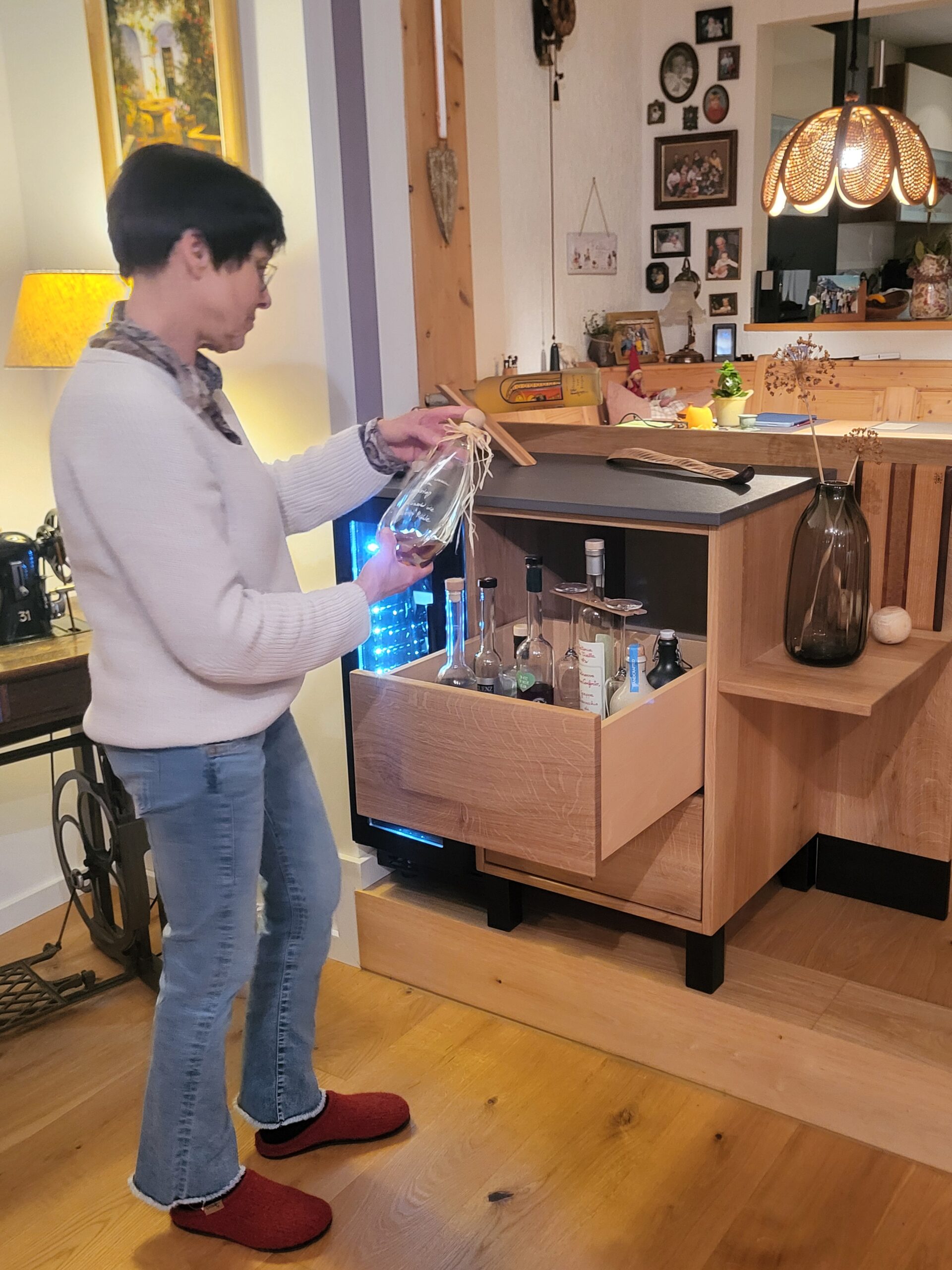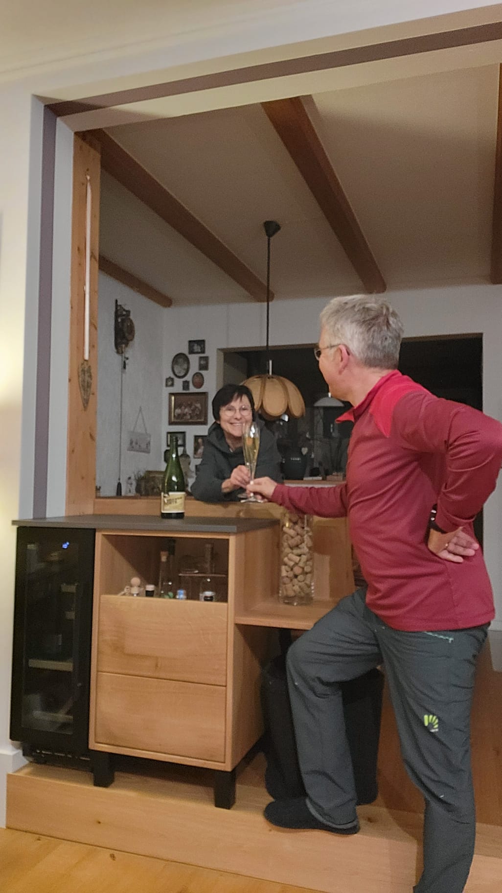 Augsburger Kunden, die einst ein Stehpult bei uns entdeckt haben, wünschten sich jetzt eine Lösung für die Rückseite ihrer Eckbank. Und weil sie schon da waren und in unserer Nachbarschaft übernachtet haben, nahmen sie auch gleich am abendlichen Kochworkshop unseres Rotary Clubs Auerbach teil. Vermutlich ist es die freundschaftliche Beziehung zu fast allen Kunden, die unsere Arbeit so angenehm macht?