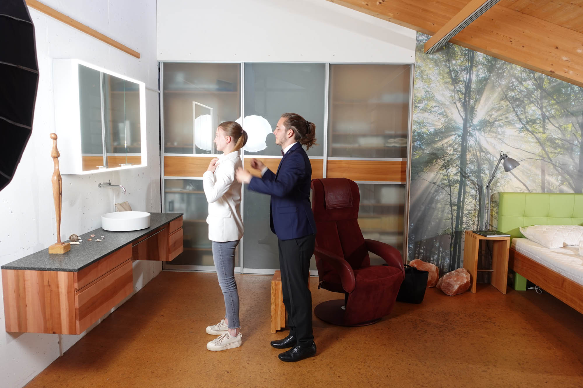 Wir haben das Glück, dass ein junger Schreinermeister unser Team bereichern wird, der die Möbelmacher in die nächste Generation führt. Peter Schmitt hat bei uns einige Jahre als Geselle und immer wieder auch als Model gearbeitet und gerade seinen Meistertitel mit diesem edlen Meisterstück erworben. Er wird bei uns den Altersdurchschnitt senken, neue Ideen und Prozesse einbringen und als Einrichtungsberater für alle Kunden zur Verfügung stehen: Ergänzend, anstatt und auch zusammen mit Ute und herwig Danzer.