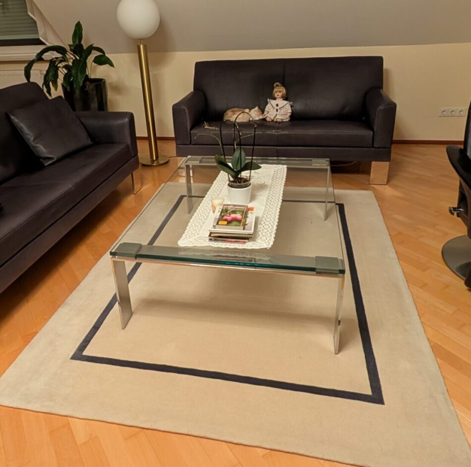 Dieses gebrauchte Kirschbaummöbel kann uns supergünstig verlassen. Es ist wie neu, aber kostet nur ein Viertel, weil wir dafür keinen Platz in der Ausstellung haben. Rufen Sie uns an, wenn Sie 305 cm Platz haben – den Teppich und den Glastisch hätten wir auch noch dazu.
